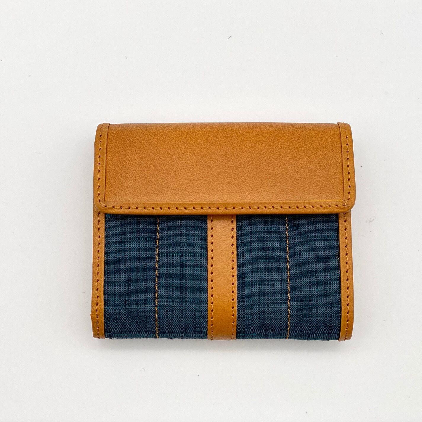 一つと作品の中で、革の肌触りと手織りの伝統工芸織物の手触りの2種類を感じていただける面白い財布です。