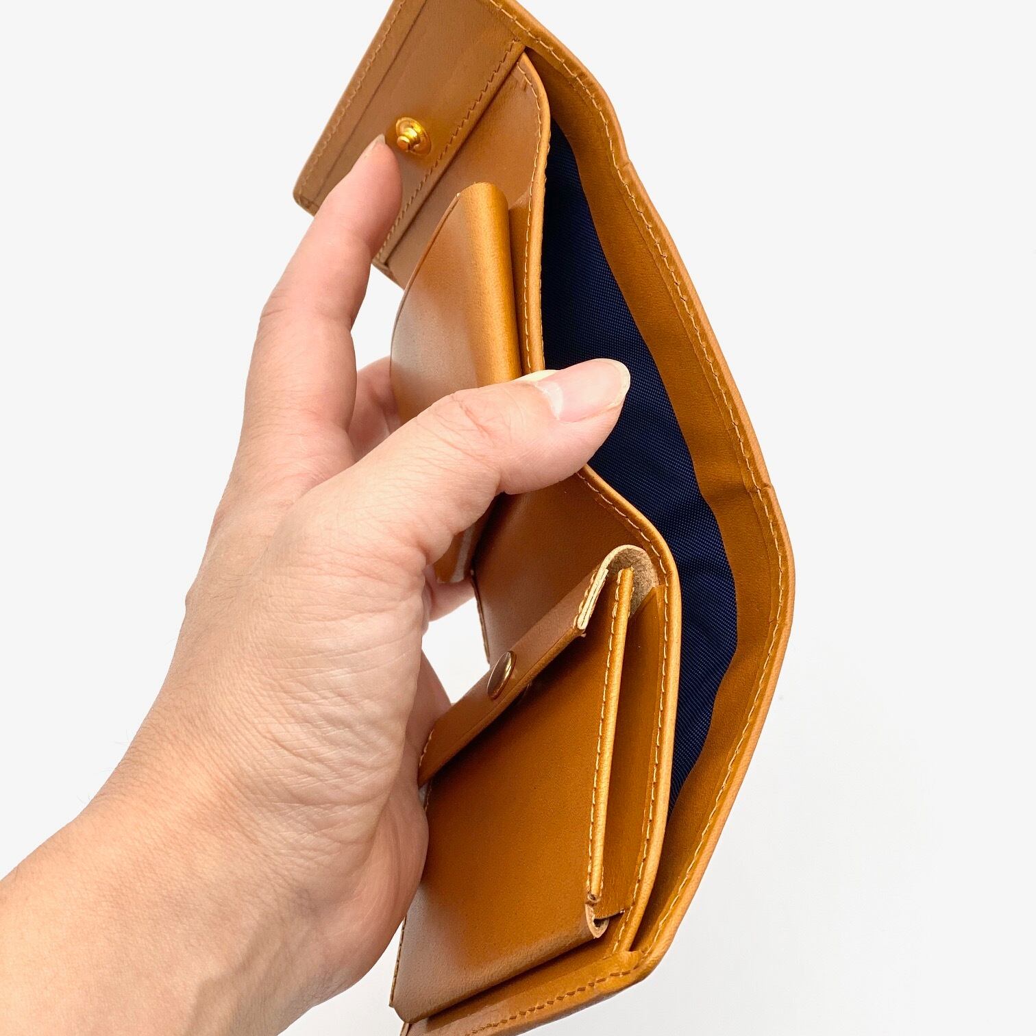 レザー×伝統工芸絹織物「本庄織物」の三つ折り財布(キャメル)